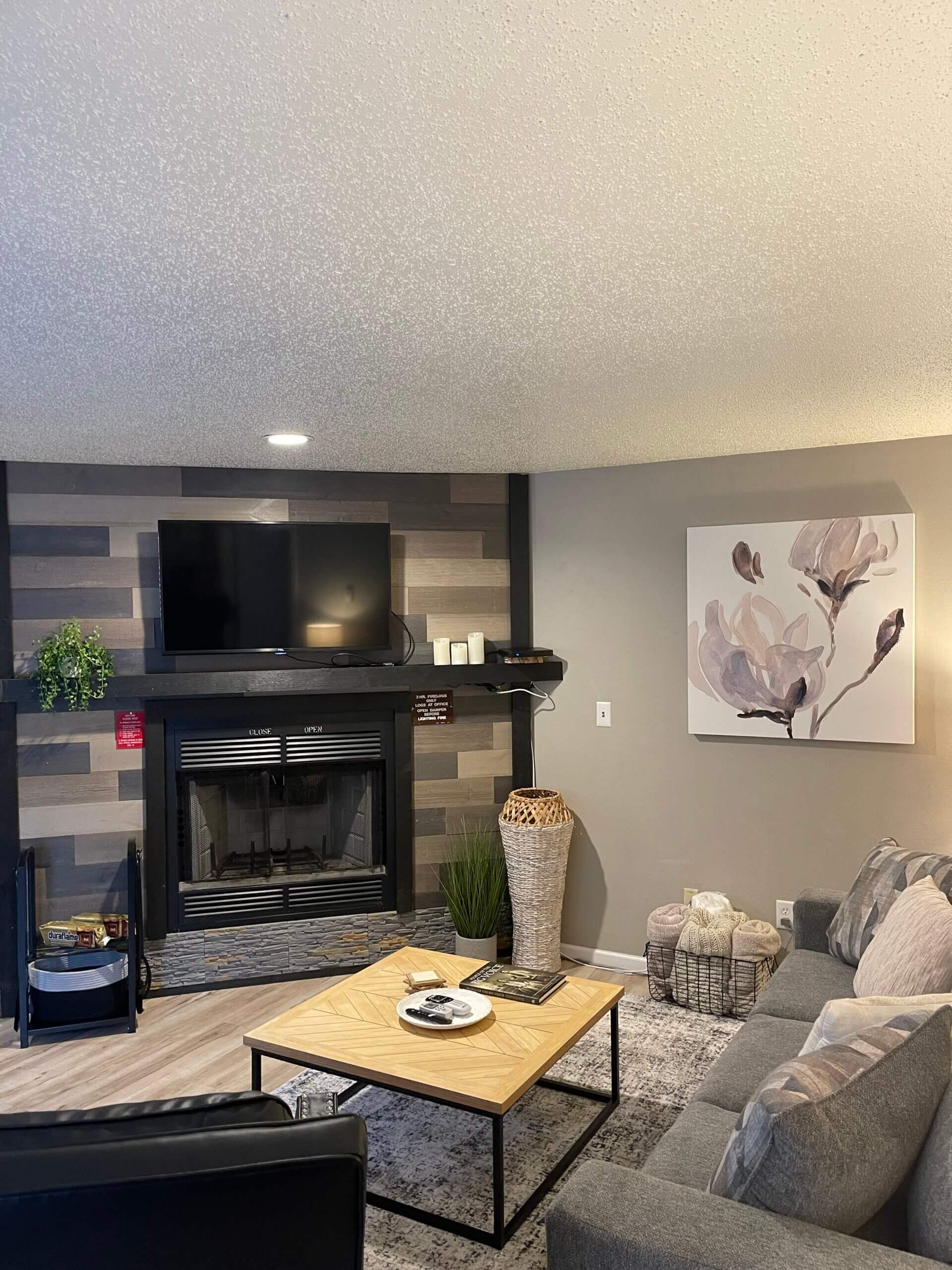 Newly Furnished & Decorated!! Beautiful garden side 2 bedroom, 1 bathroom upper level condo. Full kitchen stocked with cooking ware and utensils. Cozy living room has a fireplace, queen size sofa sleeper, and a large TV. The master bedroom features a king bed, jacuzzi tub, TV and balcony access. Second bedroom has a king bed and a TV. Sleeps 6.