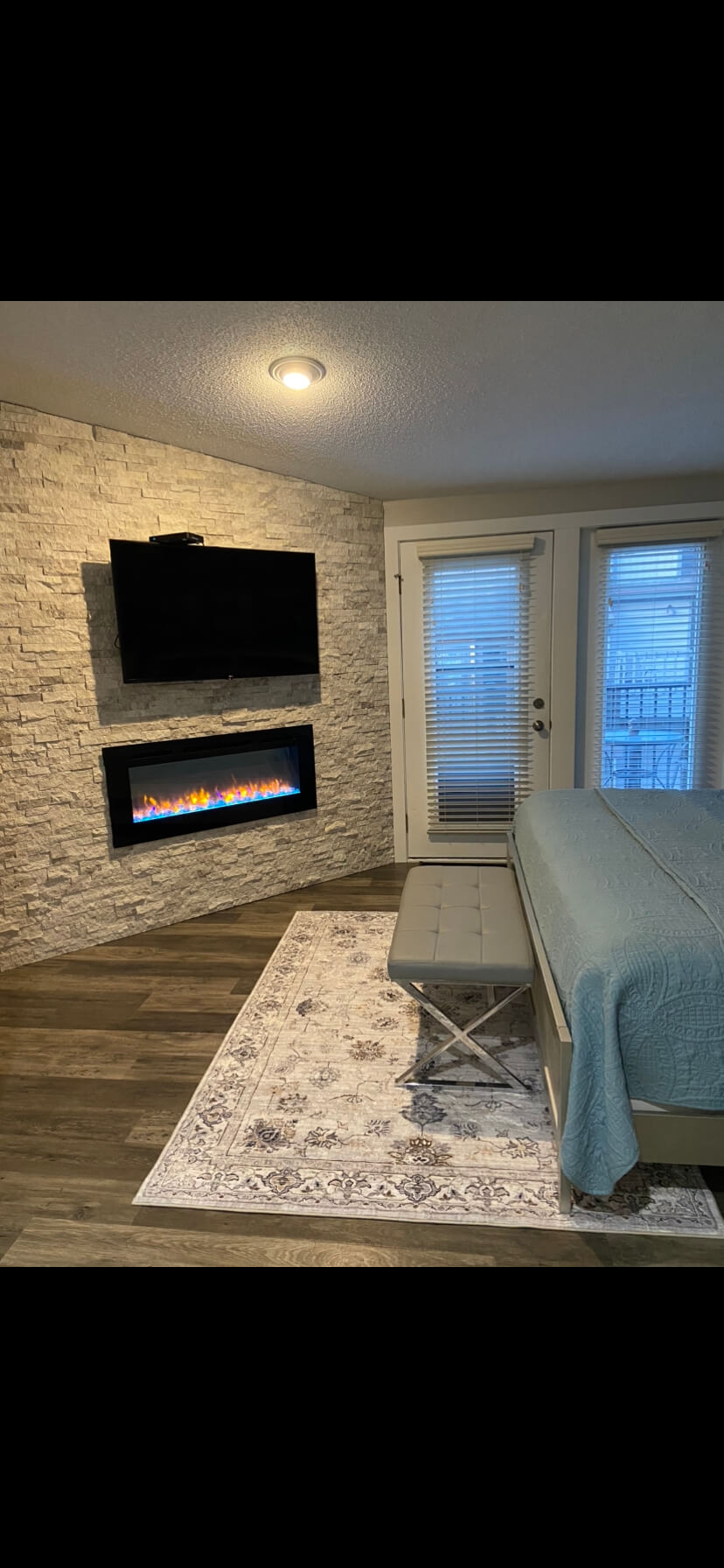 Newly Updated!! Garden side 1 bedroom, 2 bathroom upper level condo. Full kitchen with dishwasher and dining area. Kitchen is fully stocked with cooking ware and utensils. Open living room features electric fireplace, large TV, queen sofa sleeper, twin sofa sleeper and queen pull down murphy bed. Master bedroom has a private bathroom and features electric fireplace, king bed, TV and balcony access. Sleeps 4.