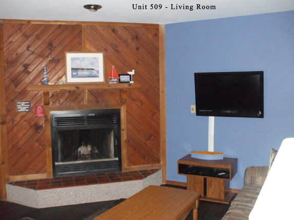 Garden side 2 bedroom, 1 bathroom condo with a full kitchen on the 1st floor. Living room has a fireplace and full-size sofa sleeper with a flat screen TV. This unit has a queen size bed in the master bedroom with a jacuzzi hot tub and a flat screen TV. Second bedroom has a full size bed with a DVD player.